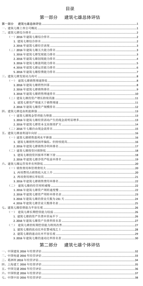 《全国建筑承包和房建七雄上市公司2016年经营分析报告》抢鲜看